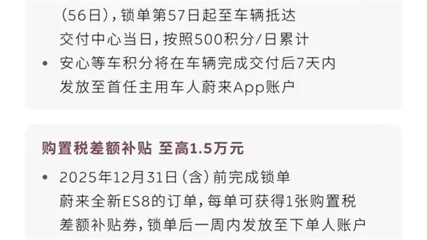 所以,只有少數(shù)的車企選擇盡可能多的兜底。比如蔚來第三代ES8給到的是,在2025年12月31日(含)前完成鎖單的,若因蔚來原因在2026年才開票交付,提供“購置稅差額補貼券”來抵扣部分車款,最高可抵扣1.5萬元。另外在廣州車展里,沈斐也表示,樂道肯定會有相關(guān)的兜底政策。