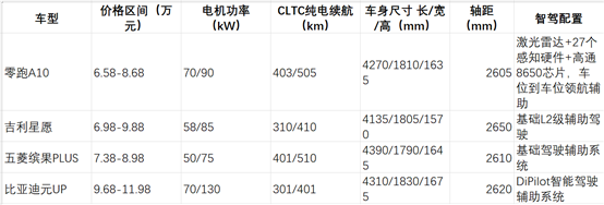現(xiàn)在 10 萬級(jí)純電 SUV 市場的主力選手就是比亞迪元 UP 和吉利星愿,我把三臺(tái)車主核心參數(shù)給大家列出來,一目了然:這么對(duì)比下來就很清楚了:零跑 A10 比吉利星愿便宜 1 萬多,比比亞迪元 UP 便宜 3 萬多,但是配置反而更高,尤其是智能化配置,直接比對(duì)手高了一個(gè)量級(jí),性價(jià)比確實(shí)是獨(dú)一檔的存在。就像媒體說的那樣:"10 萬級(jí)的價(jià)格,敢對(duì)標(biāo) 20 萬級(jí)的智能化配置",真不是吹的。